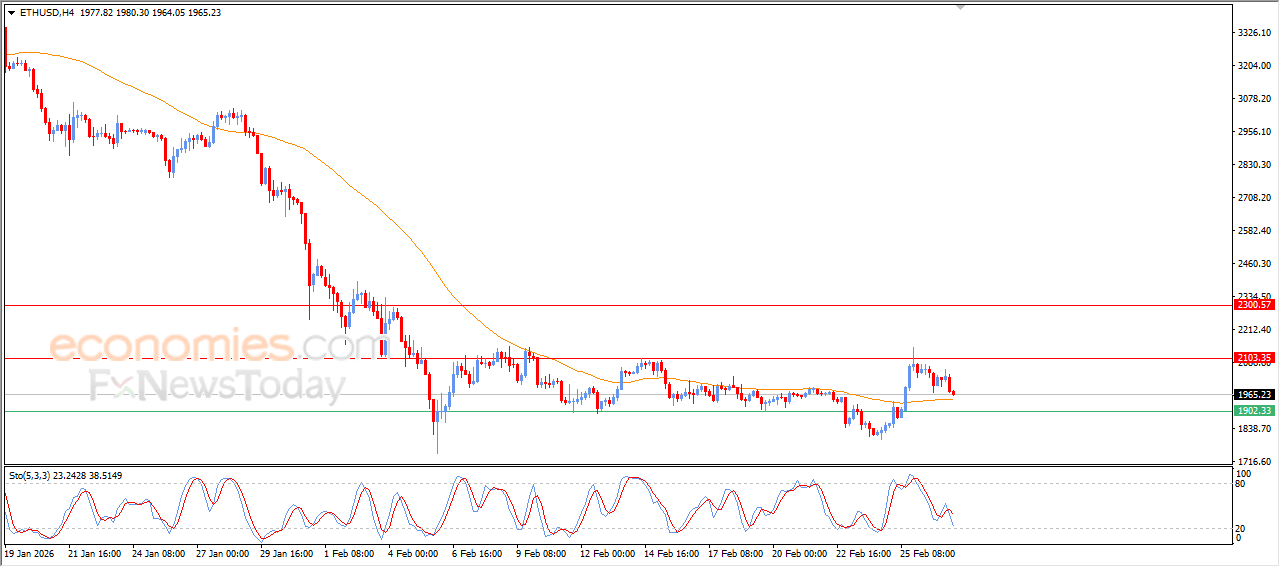 Цена (ETHUSD) снизилась в ходе последних внутридневных торгов на фоне негативных сигналов от индикаторов относительной силы, продолжая попытки набрать необходимый бычий импульс для восстановления. В краткосрочной перспективе доминирует бычья коррекция, а динамическая поддержка представлена торгами выше EMA50, что повышает шансы на восстановление цены в ближайшей перспективе.